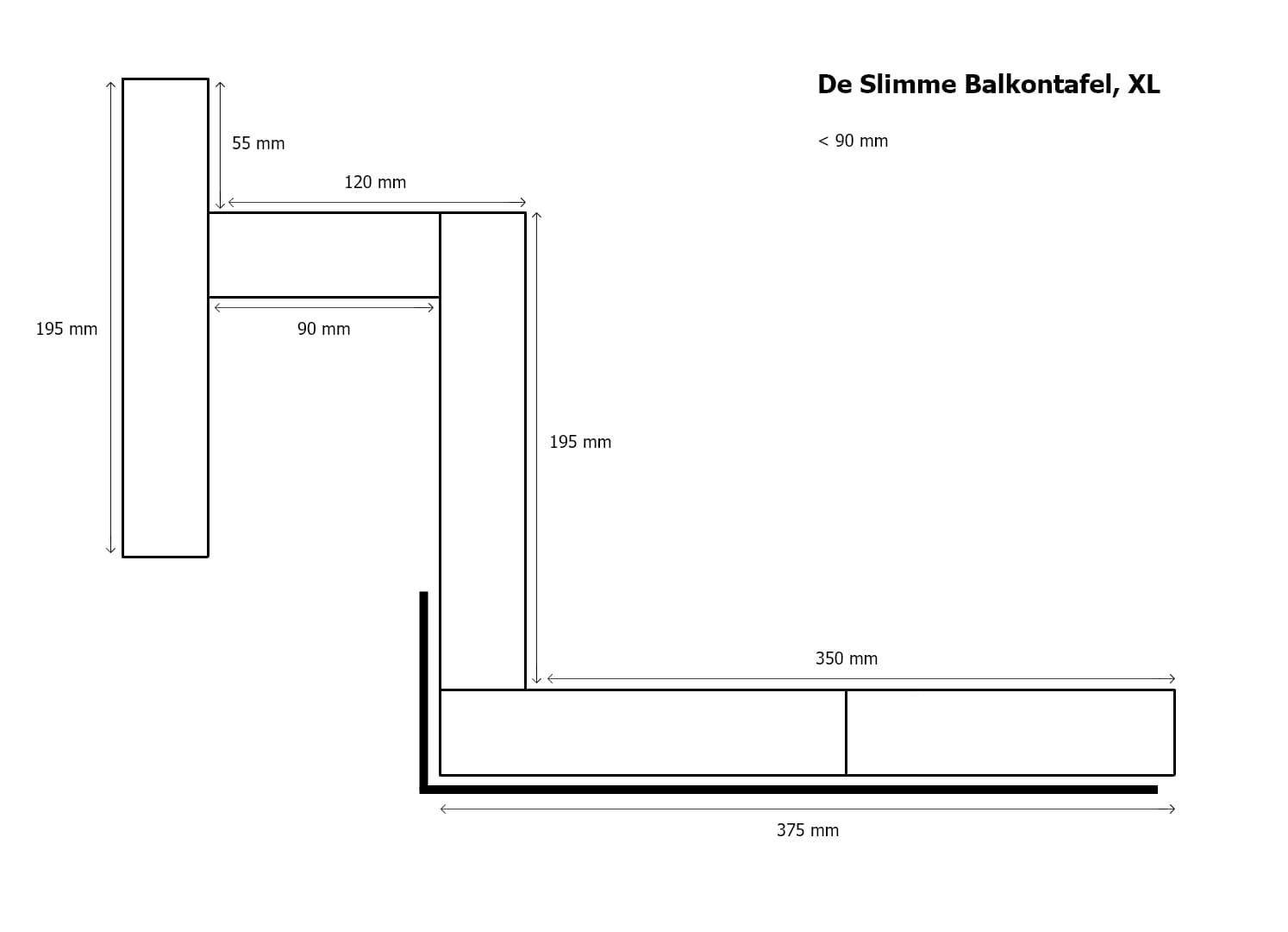 De Slimme Balkontafel XL niet opklapbaar, lengte 49 cm