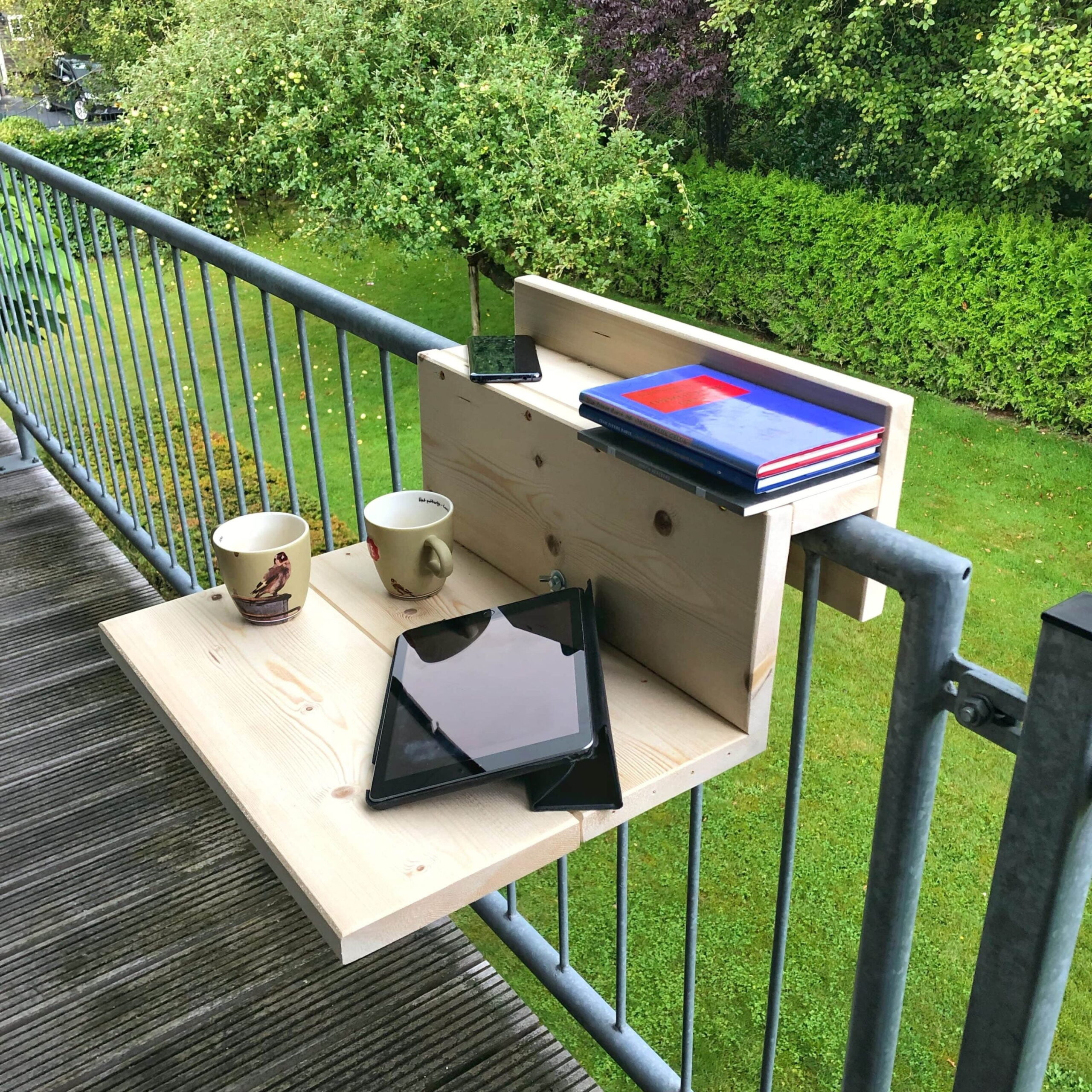 Heb jij een krap balkon? Dan is De Slimme Balkontafel iets voor jou! De houten tafel hangt aan de balkonreling en neemt daardoor nauwelijks ruimte in beslag. Voor de hele kleine balkonnetjes hebben wij speciaal dit model gemaakt!