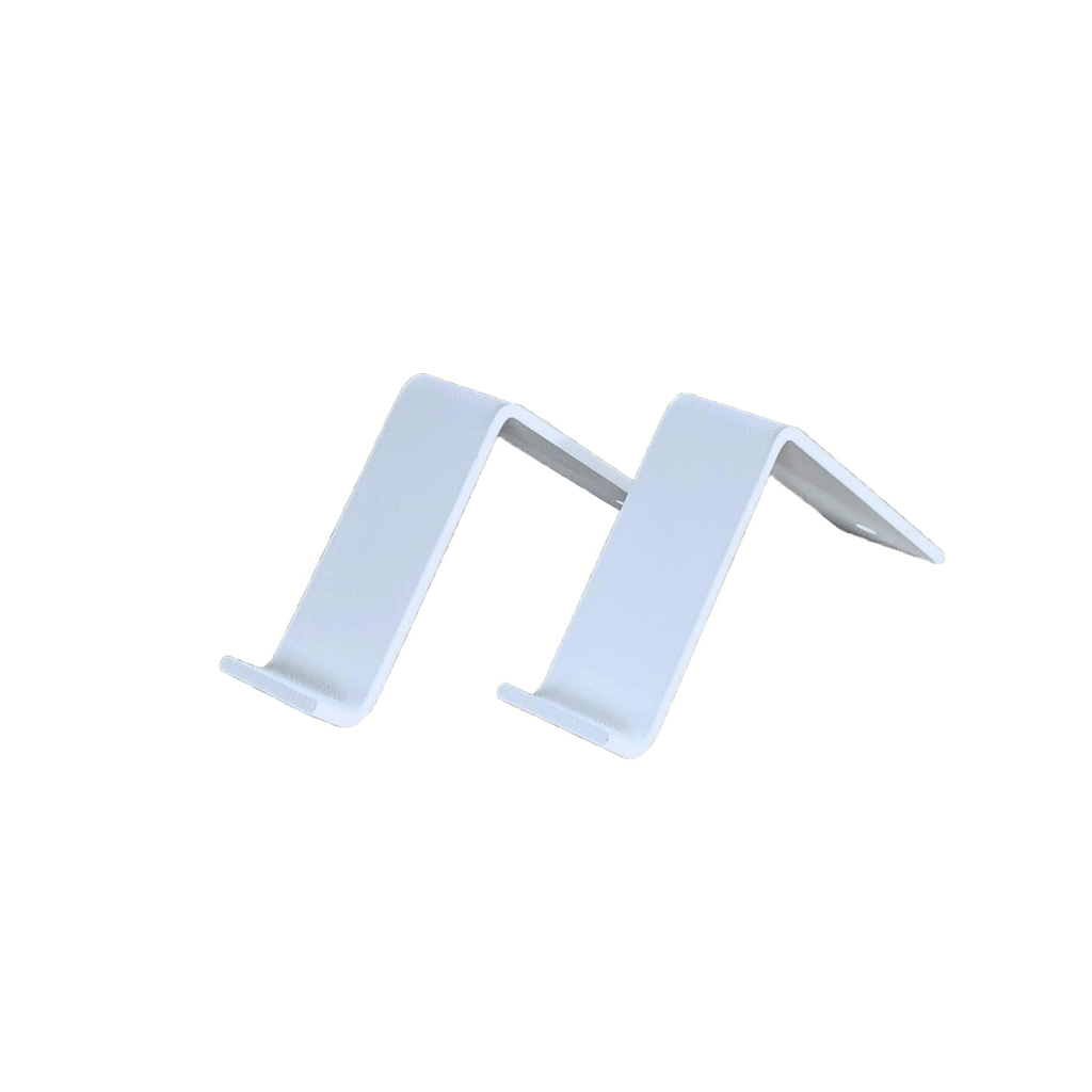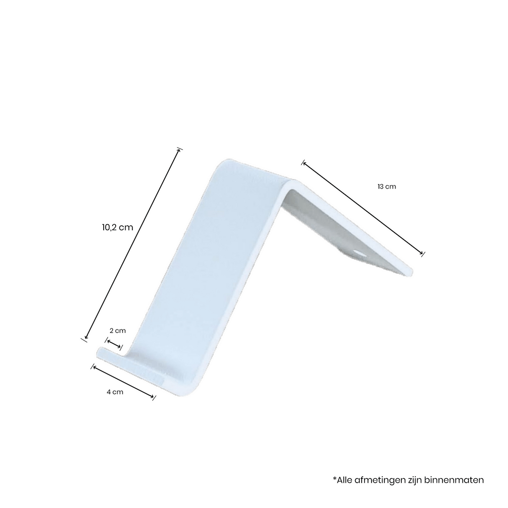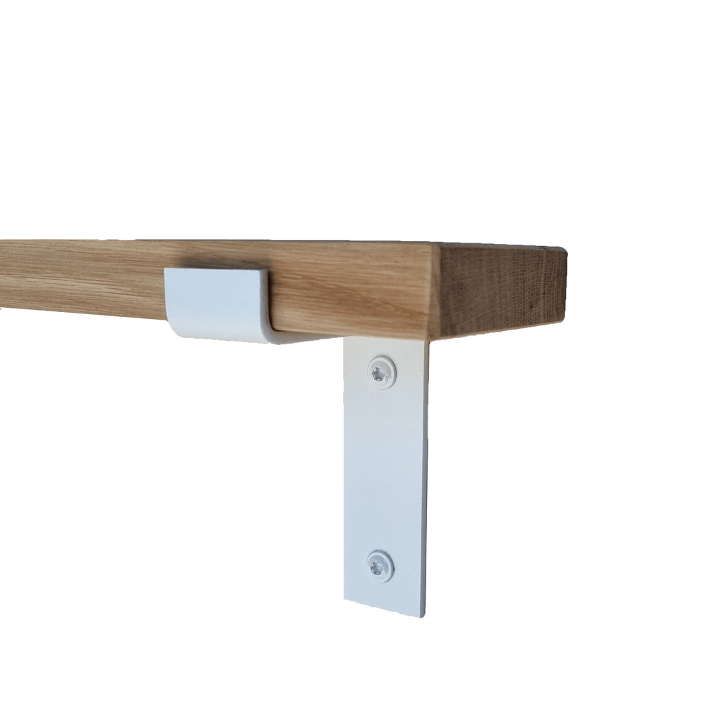 Set van twee plankdragers met mat witte coating Voor een plank tot maximaal 10 cm breed Afmetingen: 15 cm hoog, 10,2 cm diep (binnenmaat), 4 cm breed Incl. bevestigingsmateriaal (pluggen, schroeven in witte coating, TORX-30 montage bit)